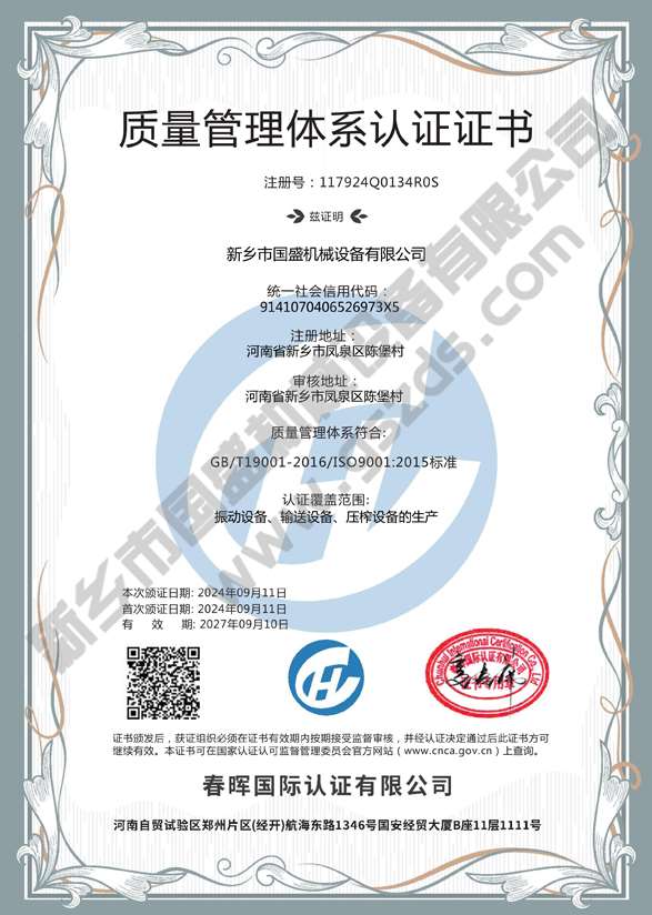 質量管理體係認證證書